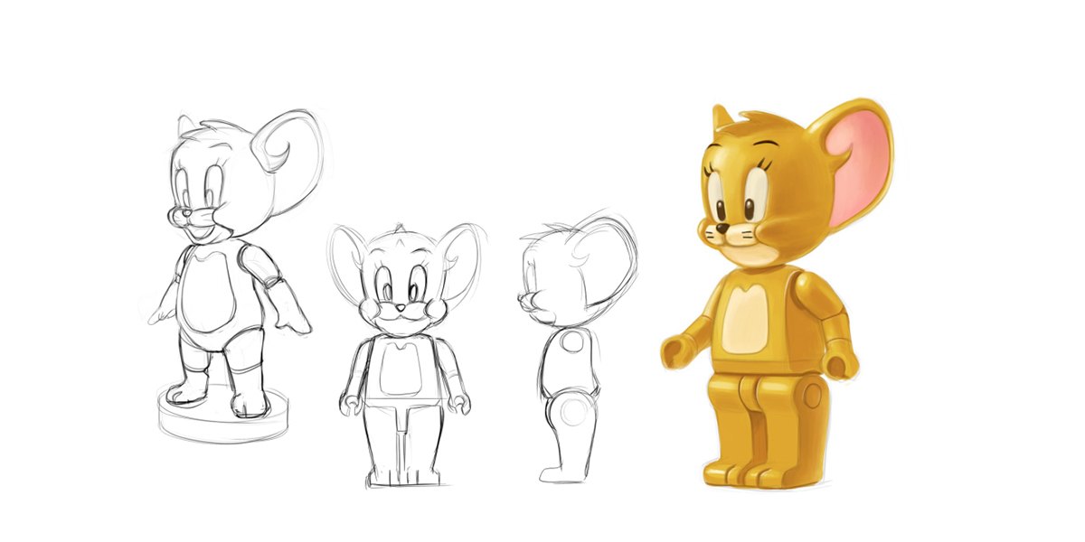 此方案的設計來源自經典動畫《貓和老鼠》,項目目的是設計一款“Jerry機器人“。設計師提取卡通形象Jerry的線條,分別設計了三款或機靈,或強壯,或可愛的Jerry機器人,讓經典動畫形象走進人們的生活。