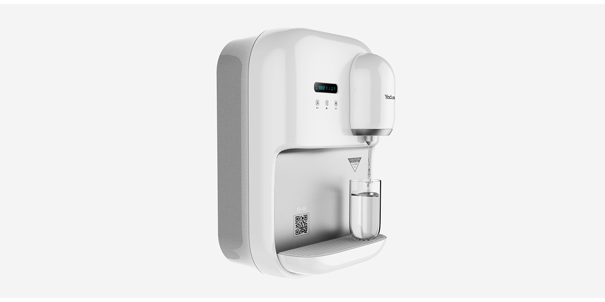 此款產品為校園直飲水的設計方案,整體造型飽滿,采用膠囊式的出水口,與市面上的管線式飲水機相區分,學校師生可通過掃描二維碼來進行支付接水,方便、快捷。