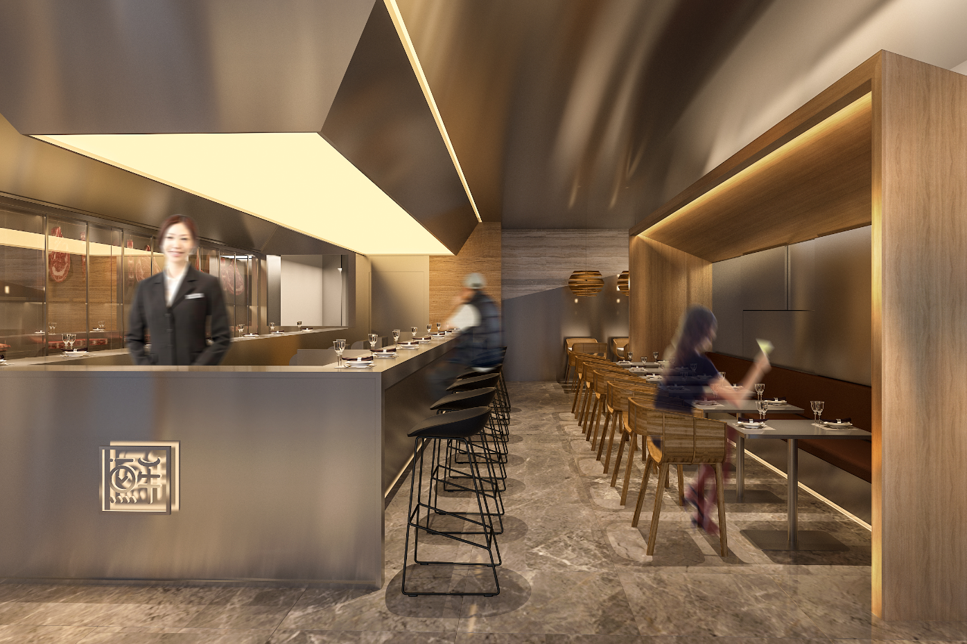 易見(jiàn)鮮品牌門(mén)店設(shè)計(jì)著眼于新中產(chǎn)階級(jí)的生活定義,以回味自然和實(shí)驗(yàn)留鮮的概念定位,結(jié)合設(shè)計(jì)美學(xué),融合了西方飲食文化影響的現(xiàn)代設(shè)計(jì)方式,為美食和顧客的沉浸式體驗(yàn)營(yíng)造了一處健康且又時(shí)尚精致的環(huán)境。