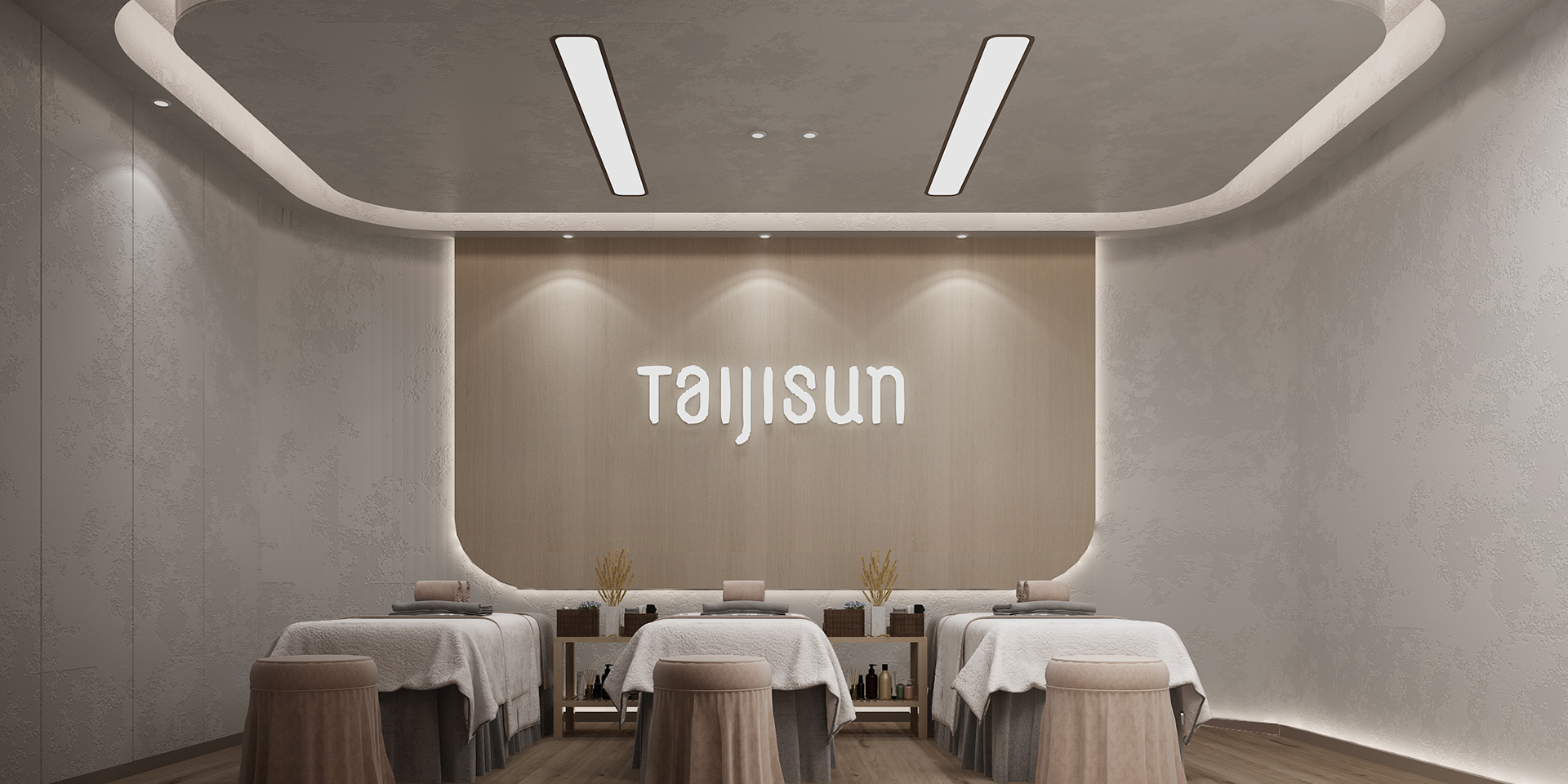。對空間整體賦予東方健康文化的創(chuàng)新融合理念,勾勒林廓的柔和光帶與東方含蓄的品牌綠點綴交相輝映,純粹木色及米灰承托著空間的界限,構建大健康的靈性場域。步入這樣溫潤的空間的瞬間仿佛從喧囂塵世回歸安寧,煥然新生實現(xiàn)蛻變。